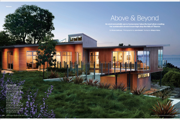 An environmentally savvy homeowner takes the lead when creating her sustainable dream house high atop the hills of Tiburon."